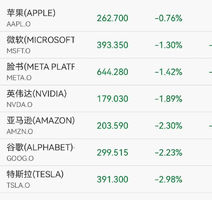 大型科技股集体下跌,谷歌、英伟达、特斯拉跌超2%。